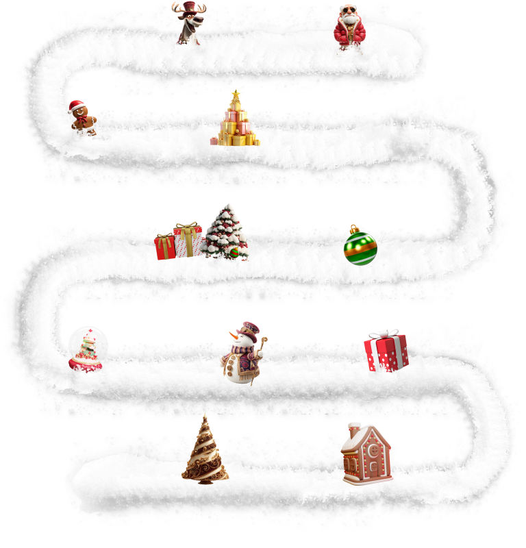 - 77th DecemberComplete a set of 3 challenging tasks within 24 hours: play 3 slot games, deposit 100 EUR, wager 200 EUR in total
